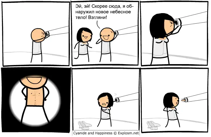 После прочтения первого комикса остальные даже не стала читать! Перевод неправильный! Смысл был в том, что телка говорит: "Я тебя даже не знаю, а ты мне уже предлагаешь секс втроём. Это как минимум странно" И тут волосы взлетают с ее головы, улетают и чувак говорит: "Вот что реально странно!"