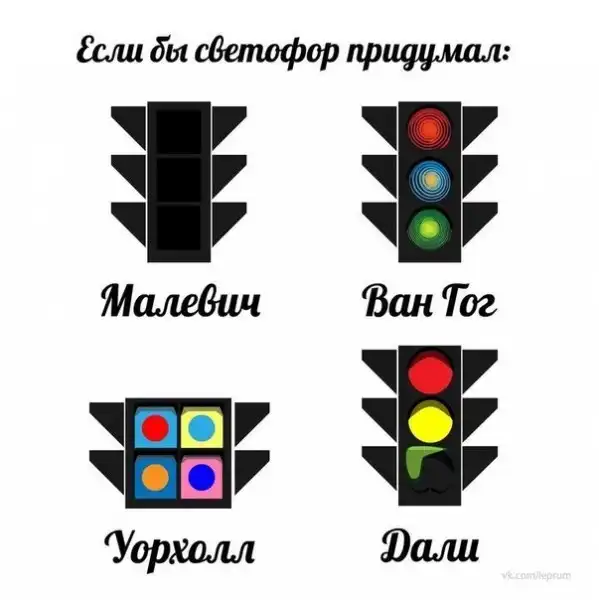 Если бы светофор придумал дали, то у него еще бы была нога из которой торчит вилка ,на которой есть губы, и все это стоит на табуретке