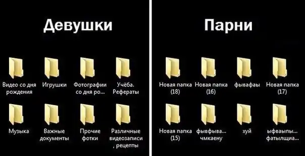 Про название папок - вранье. Как раз таки у девушек все не организованно. Личный/социальный опыт и структура мышления.