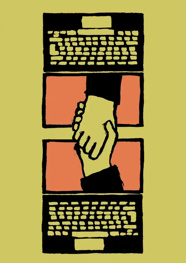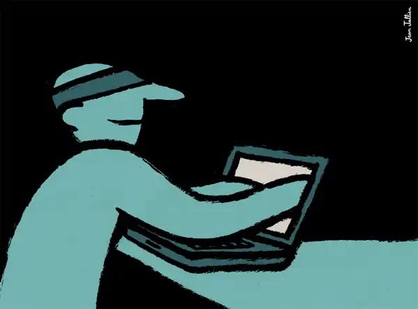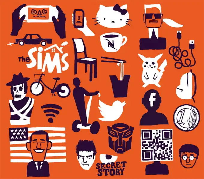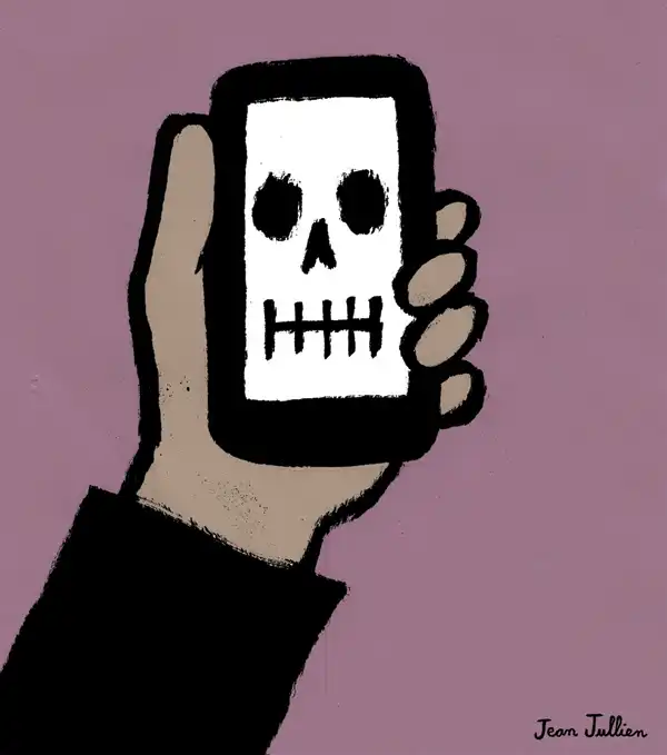 Графический дизайнер Жан Жюльен (Jean Jullien) особое внимание уделяет иронии над зависимостью современного общества от мобильных устройств и социальных сетей.