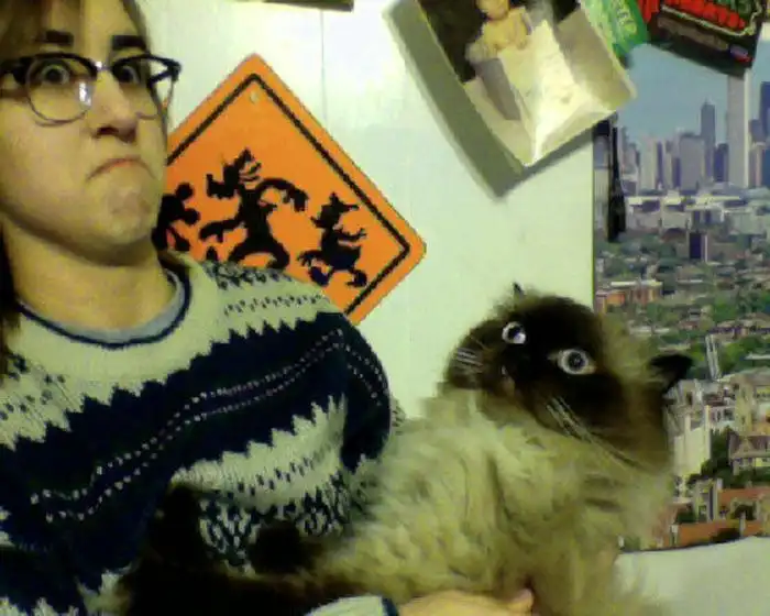 Милые и смешные животные. Кошка и метла