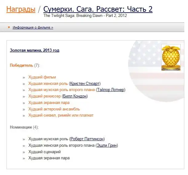 Фильм "Сумерки" отхватил 7 малин... Хоть какая-то справедливость есть в этом мире