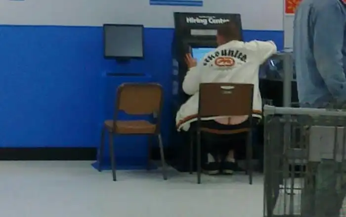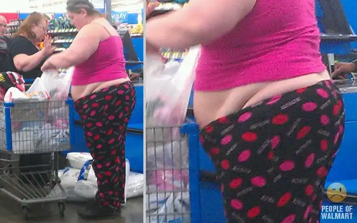 в основном жирабасы...неудивительно что задницы из штанов торчат - такую задницу одеть сложно...нужны штаны Гомера)))