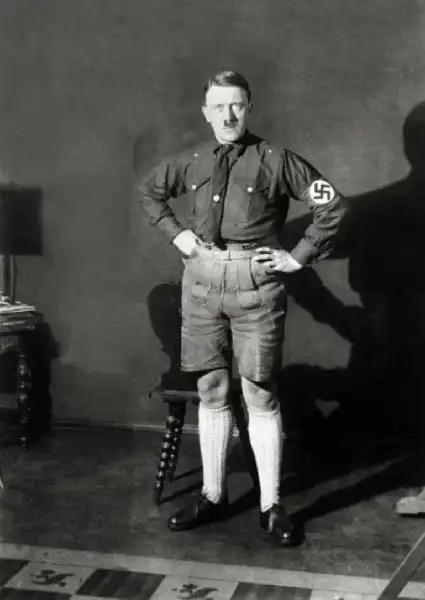 Оказывается, в конце 20-х годов прошлого века личный фотограф Адольфа Гитлера сделал несколько снимков фюррера на природе. Однако, посмотрев результат, Гитлер запретил распространять эти кадры, сказав, что "это ниже его достоинства". Не мудрено, ведь в коротеньких шортиках тиран смотрится как школьник.