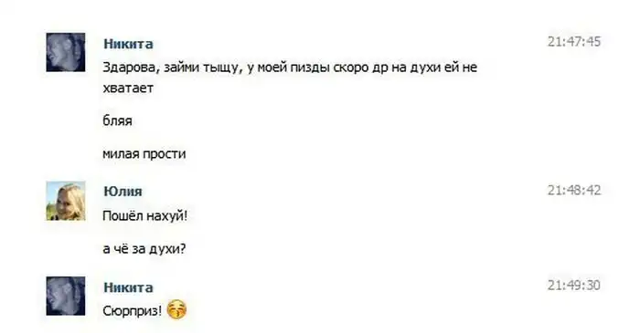 Прикольная коллекция забавных, глупых, нелепых и просто очень смешных личных переписок из социальной сети ВКонтакте.