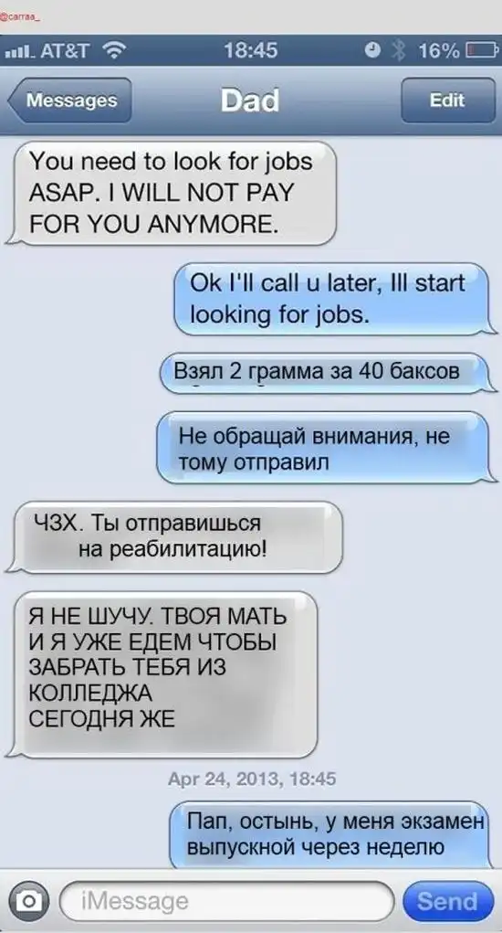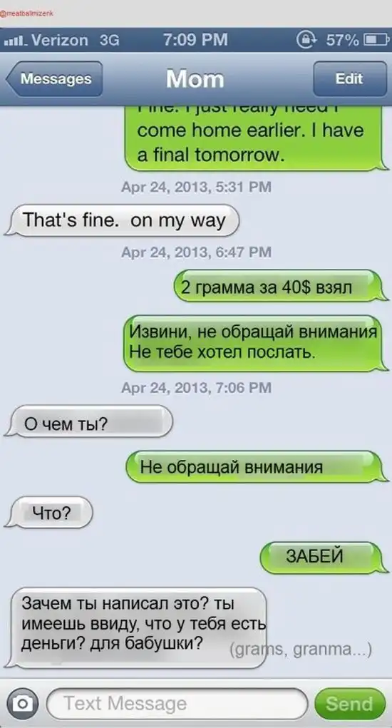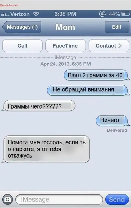 Смс-прикол над родителями: "купил 2 грамма за 40 баксов"
