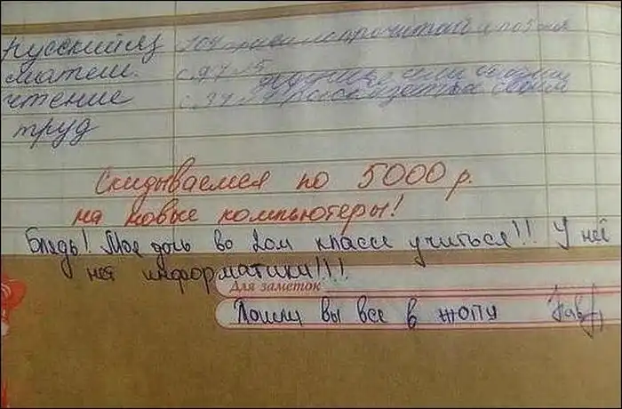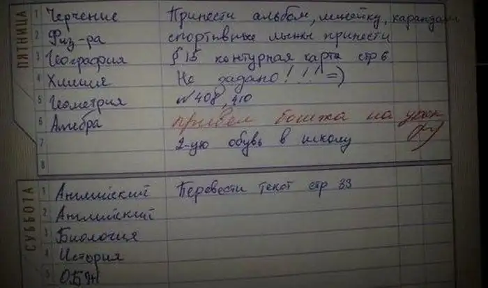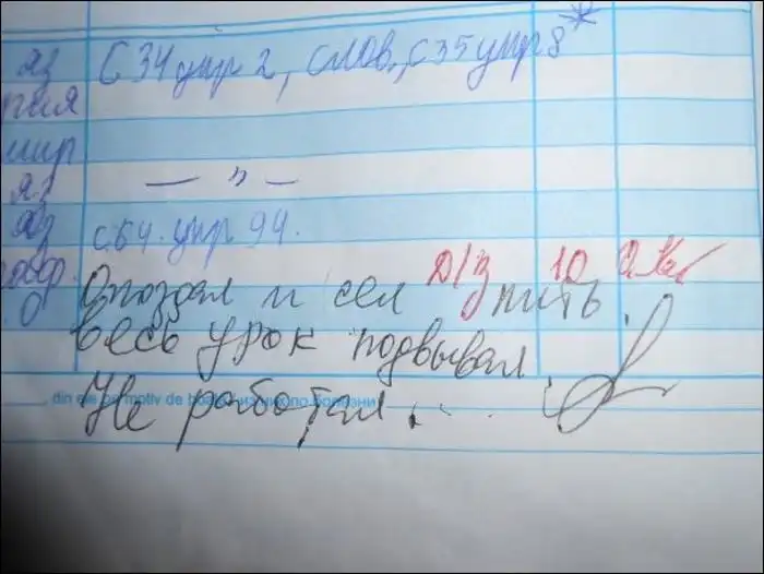 Смешные замечания в школьных дневниках
