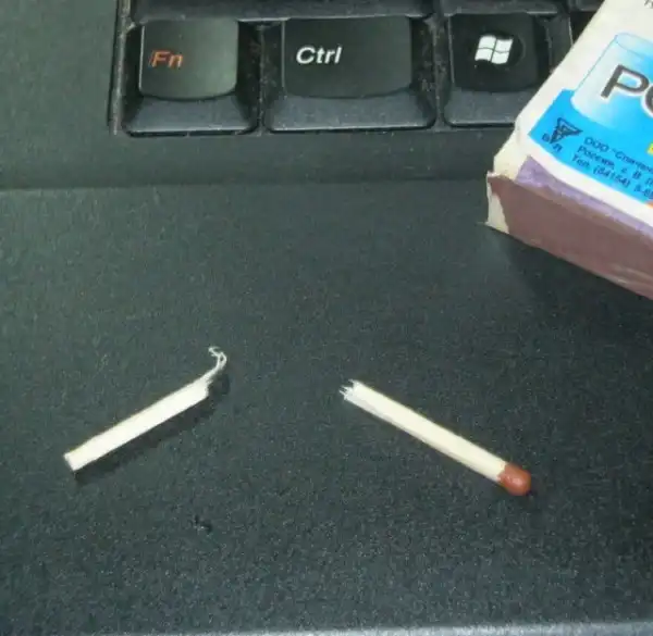 Намазал обе склеиваемые части клеем «Суперпрочный», подождал 10-15 минут – строго по инструкции, сильно сжал две половинки спички.