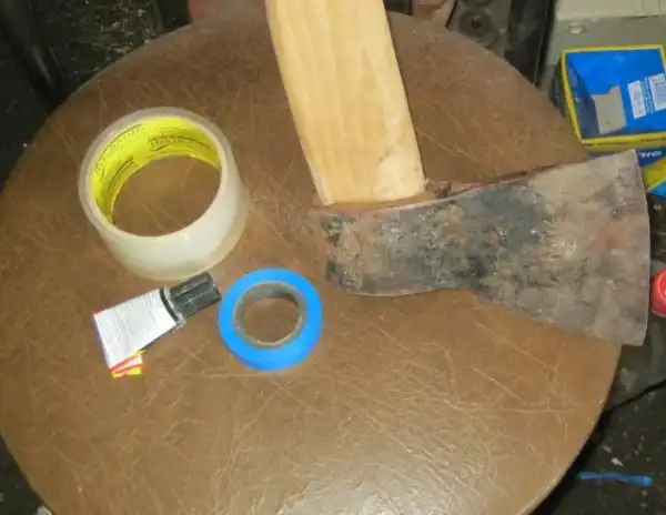 Из того, что прочел и увидел, знаю, что нужно сделать углы одинакового градуса на разных сторонах скрепляемого предмета. Самым острым режущим предметом в доме оказался топор – им и резал…