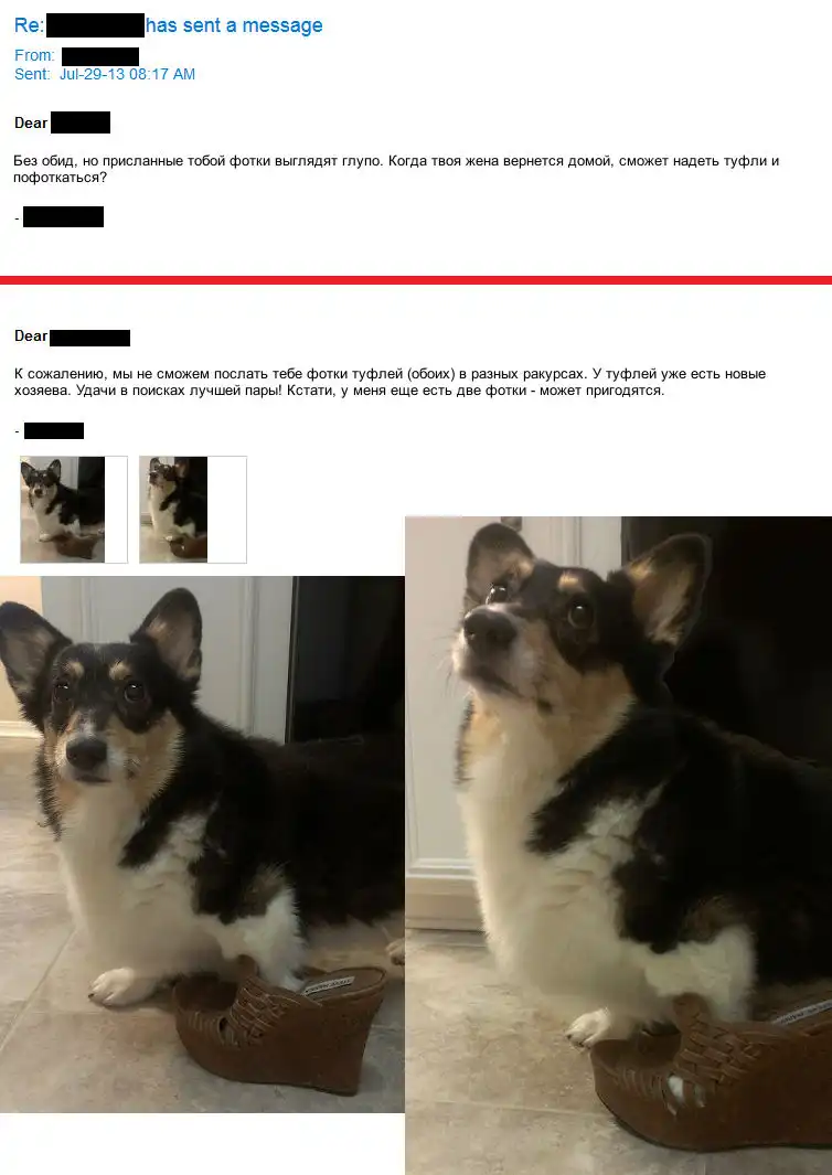 Что за времена пошли, что за нравы - извращенцы кругом прячутся. Одна девушка выставила на интернет-аукционе пару туфлей в надежде найти адекватного покупателя. Прошло несколько дней, лот уже был продан, но один гражданин никак не мог успокоиться и все выпрашивал фотографии ножек в разных ракурсах.