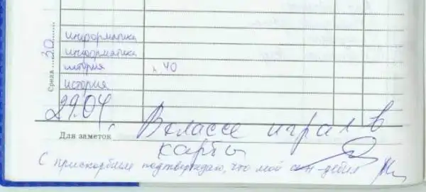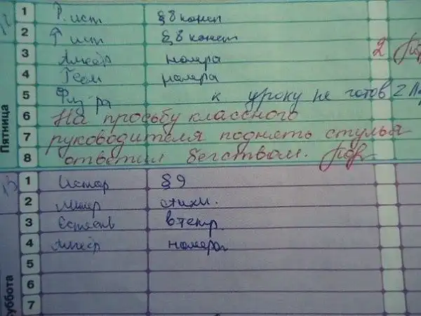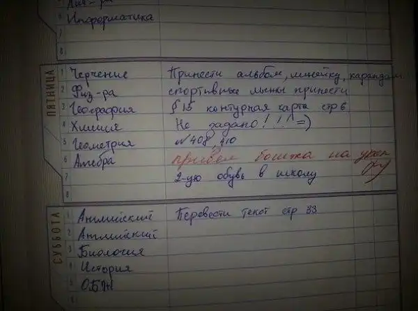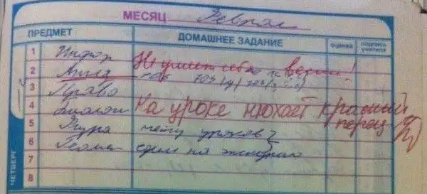 Все, ребята, лето кончилось, как это ни прискорбно. Но нам хотя бы не нужно в школу. Дети в возрасте от 7 до 17 лет, вот кому можно посочувствовать. Занятия, домашка, вторая обувь, контрольные, дурак-физрук — не самая веселая перспектива на ближайшие девять месяцев. Примиряет со всем этим только то, что в школе все-таки бывает весело. Друзья, перемены, спонтанные акции протеста против недосоленных котлет в столовке и, если повезет, увлекательное общение с педагогами на страницах главного ученического документа — дневника.