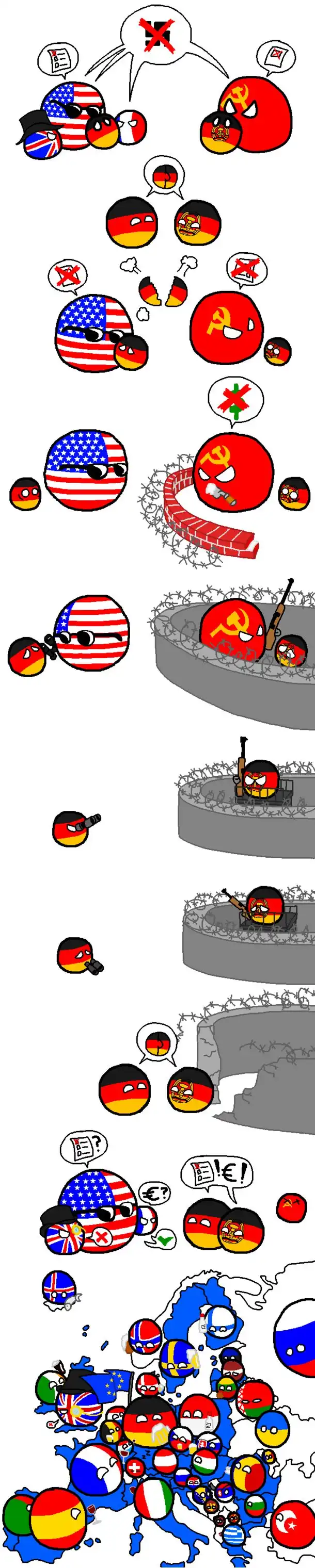 хз, такое чувство, что ссср виновата в розделении взглядов политиков германии... как с картинки видим - ссср плохой, а вот ребята бюрократы англичане, французы, и американцы хорошие... сегодня дают в руку деньги, а завтра с рукой заберут то, что дали...