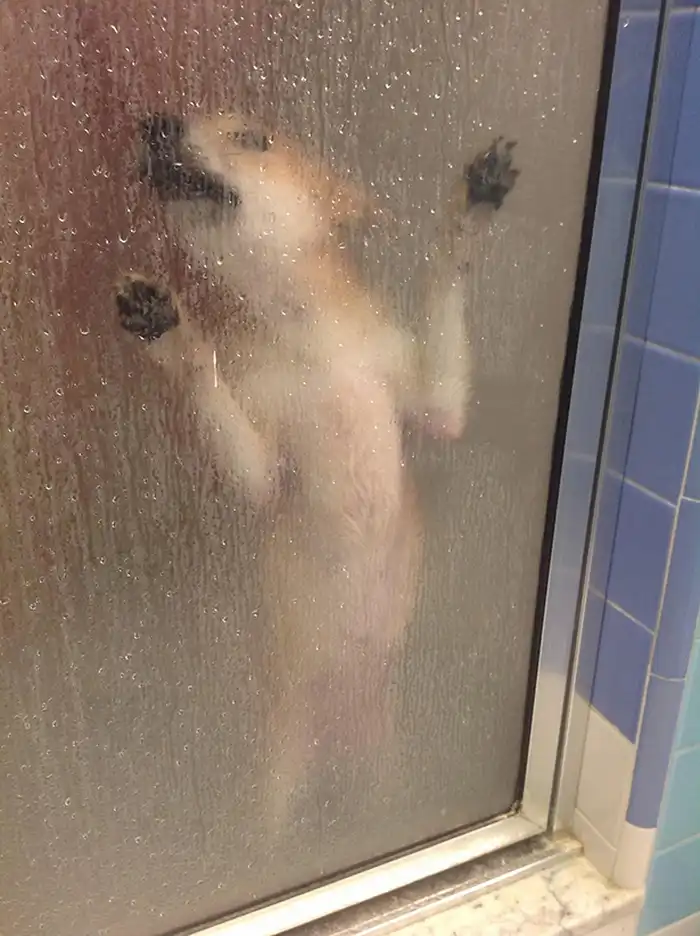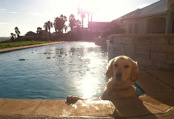 собака - в бассейне отдыхака.
