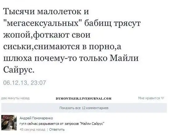 МАЙЛИ САЙРУС я написал это за вас, можете копировать в гугл