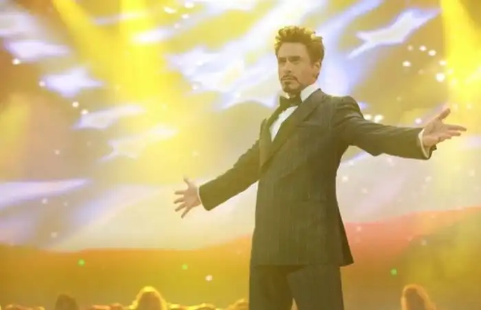 Кадр появляется в фильме «Мстители» на 56 минуте, выразительная мимика Роберта Дауни-младшего взяла свое — мем разошелся по сети.