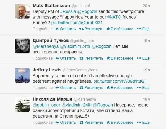 Дмитрий Рогозин поздравил НАТО с Новым годом по-русски