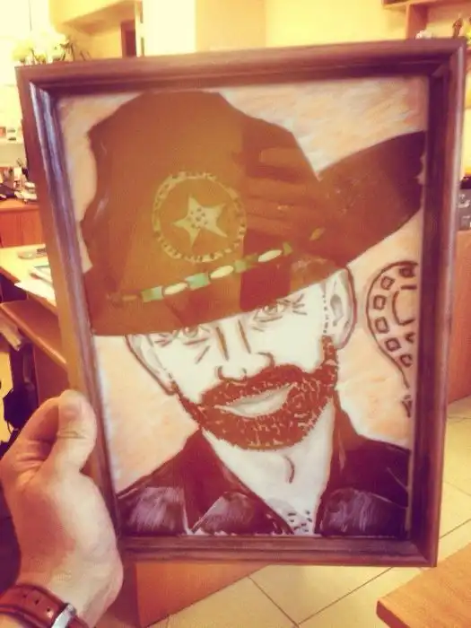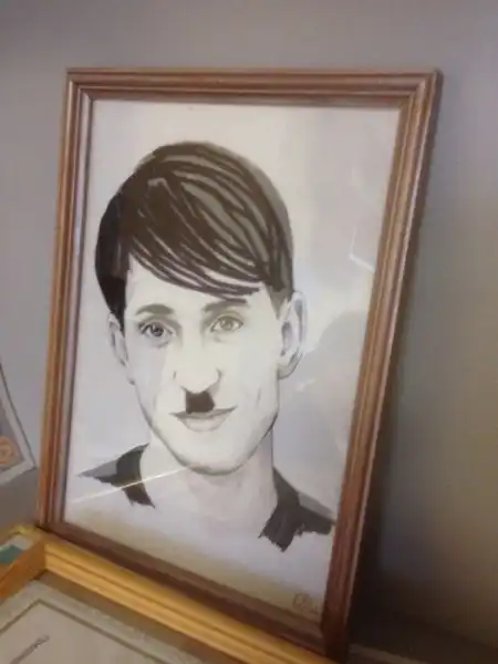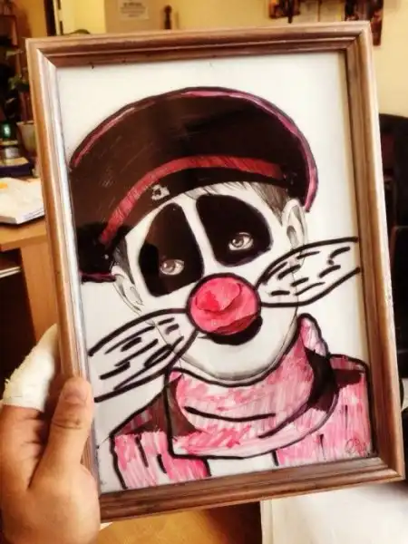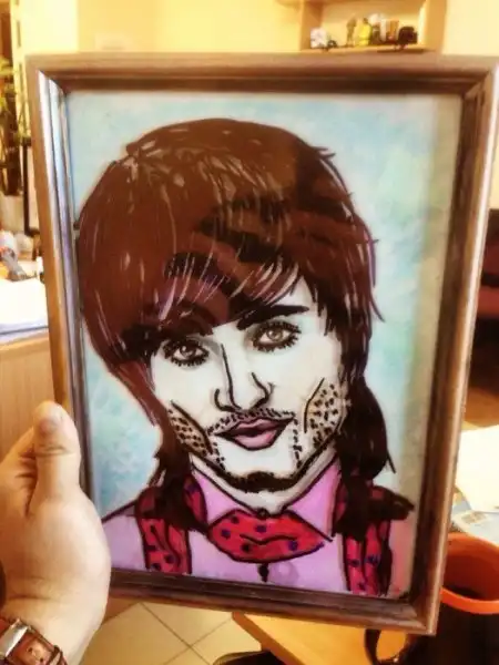 В одном офисе работник принёс свой портрет, который ему подарила одна из его поклонниц. Коллеги сразу не взлюбили этот портрет, потому что Алексей на портрете получился уж более, чем удачно. Каждый рабочий день коллеги пытались придать портрету Алексея новый облик.
