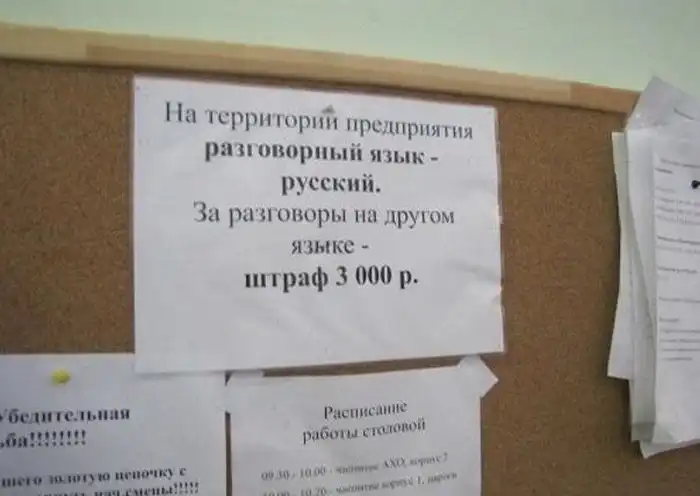 Разговорный язык русский . за разговоры на другом языке - штраф 3 000 рублей . А если английский ?