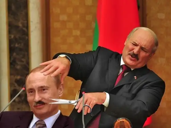 Лукашенко стрижет усы Путину, эпично... это надо в музей)))