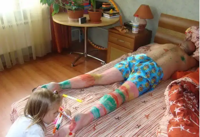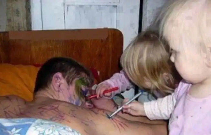 Фотка с папы и дочами больных ветрянкой - сильная такая)))