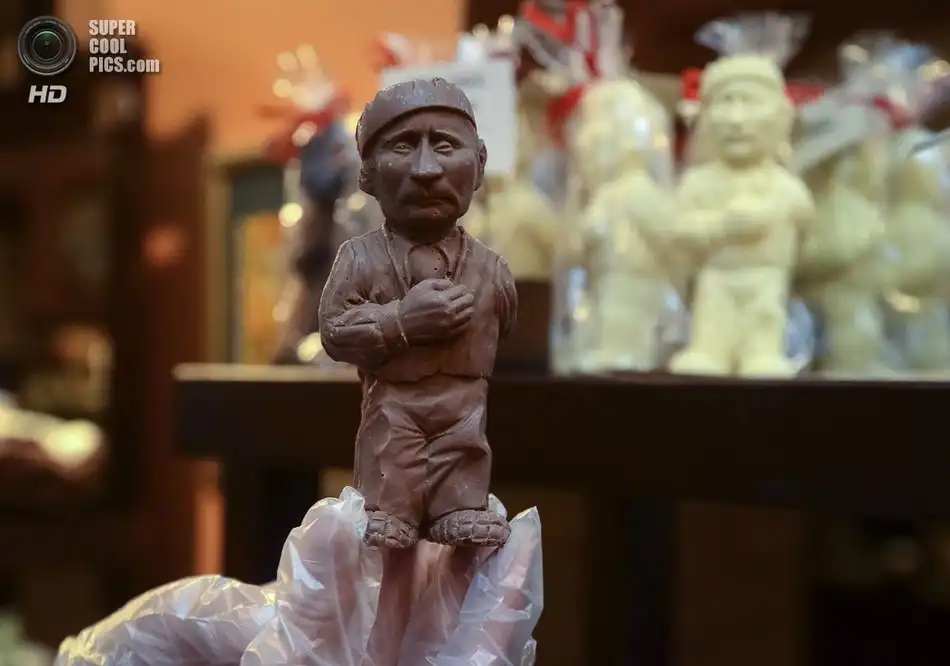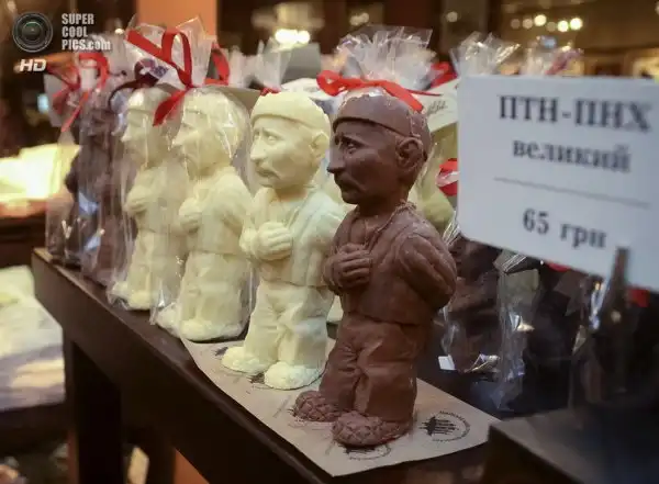В ассортименте «Львовской мастерской шоколада» появились шоколадные фигурки российского президента. Гаранта конституции изобразили в виде арестанта в ватнике с атомной бомбой за спиной и в образе Наполеона в смирительной рубашке.