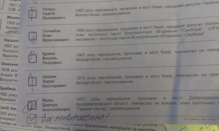 Испорченные бюллетени с выборов президента Украины 2014