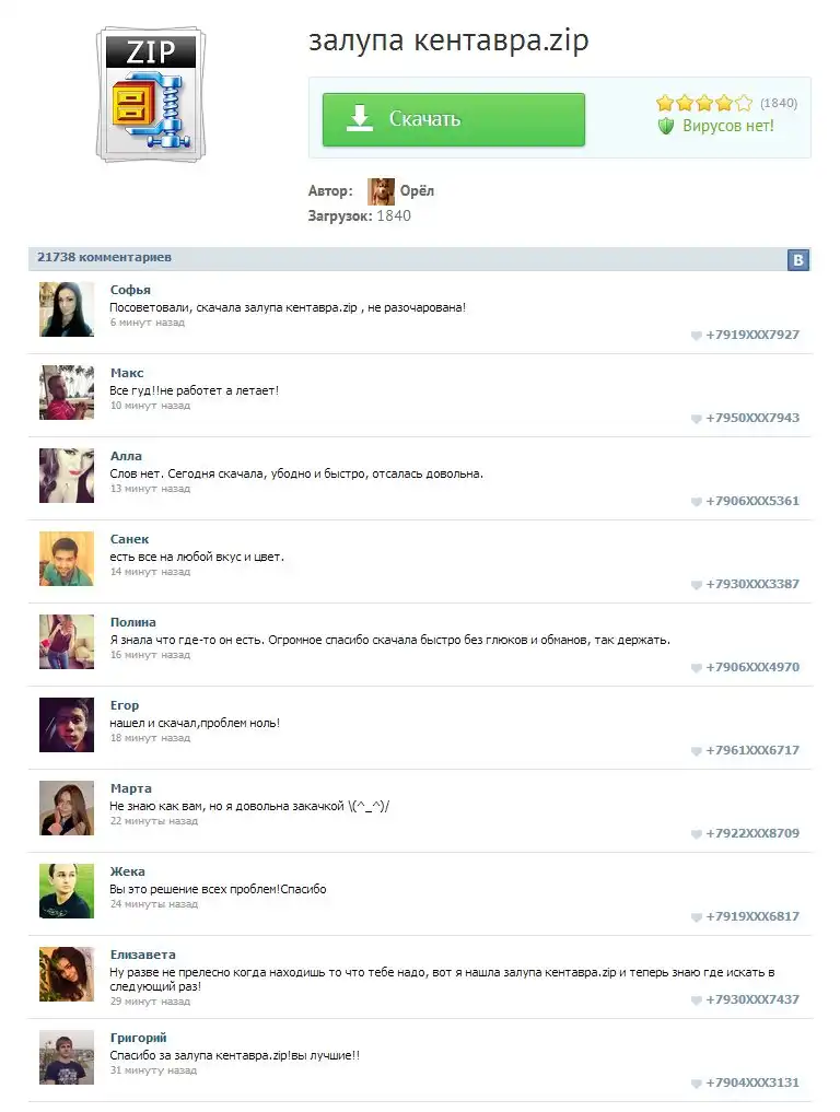 Часто нарывался при поиске каких-нибудь файликов на такие фейковые странички с троянами, но никогда в голову не приходило так стебануться.Нашел другую страничку с таким же запросом, коменты еще прикольней(особенно "я знала что где-то он есть!"):