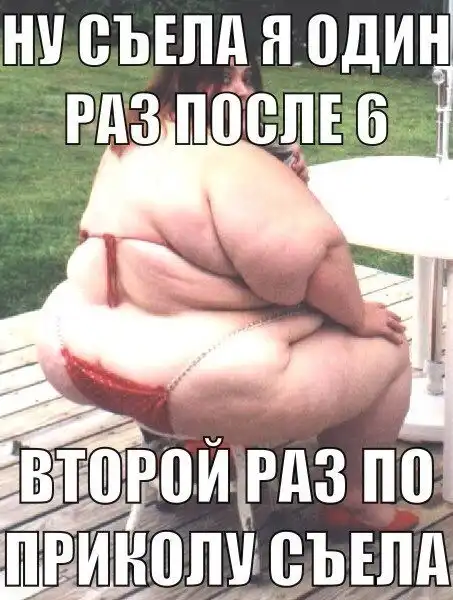 1 обжора кормит пять чел, работающих в продтоварах + спец пошив одежды + спортзал/фитнес, короче будь в теме, жри дерьмо, пей мочу, смотри телек и пытайся похудеть.