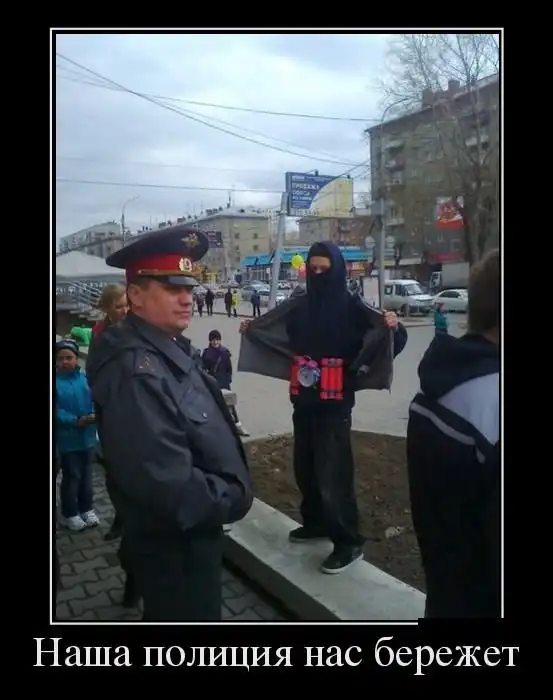 Ну, стоит клоун в маске, полицейскому теперь изобразить сценку задержания что ли?