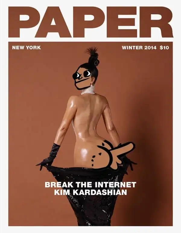 12 ноября американским журналом Paper на обложке зимнего номера была опубликована фотография обнаженной Ким Кардашьян. Фото девушки с шампанским моментально разошлось по сети, где вскоре на него появилось множество «фотожаб».