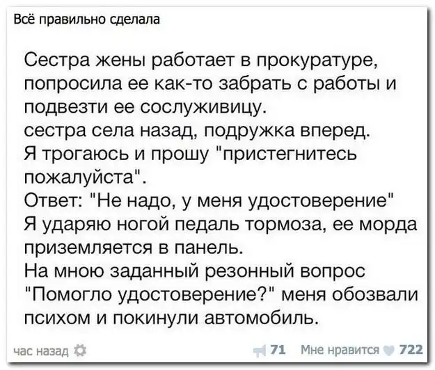 Сестра ЖЕНЫ работает в прокуратуре... Почему "все правильно сделалА" ???