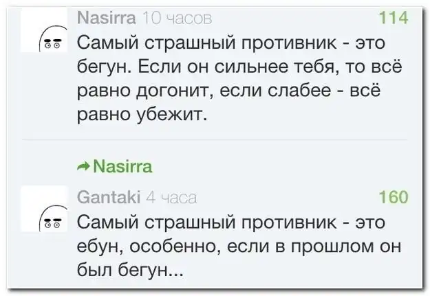 "Погоди, сука! Я на каблуках! " - тоже наблюдал такую картину
