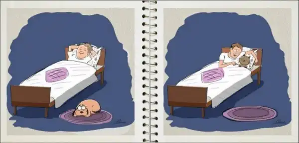 Забавные иллюстрации художника BirdBorn о различиях между котами и собаками.