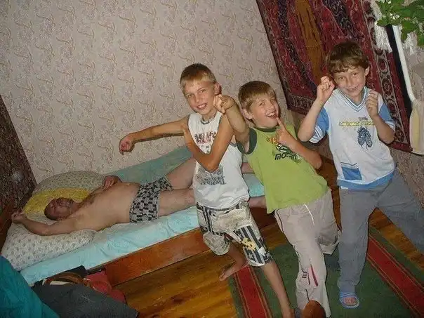 На предпоследней гляжу - баба по-большому присела, ну, думаю совсем е..нулись, а оказывается, она так шутит