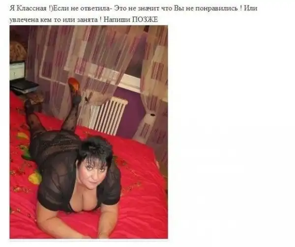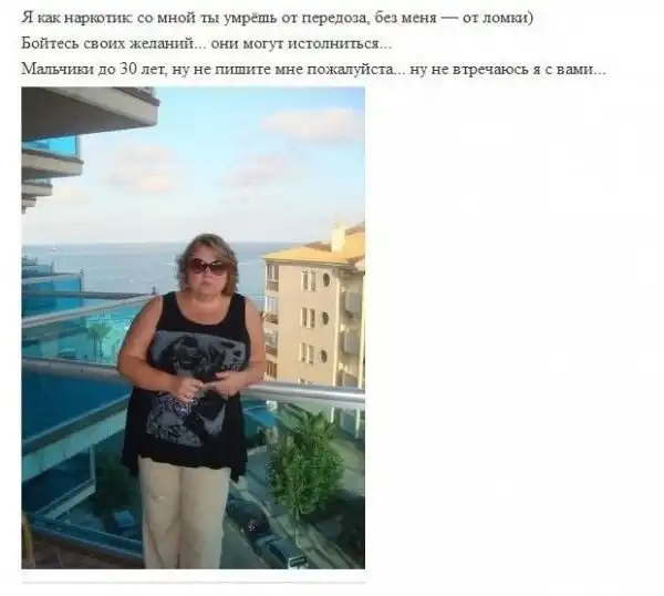 Знакомьтесь с дамочками бальзаковского возраста, которые находятся в активном поиске потенциальных сексуальных партнеров. Самых смелых и достойных кандидатов ожидает целый букет преимуществ - любовь за деньги, песни в стиле шансон и конечно же безграничное море тепла и ласки. Ну, кто готов познакомиться с опытной женщиной?
