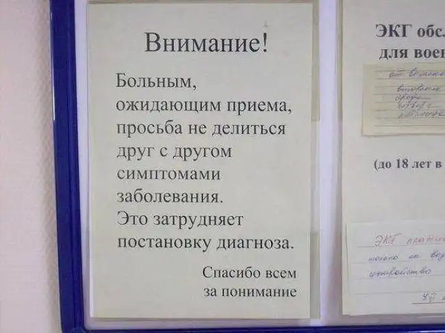 Медицина — это та область, в которой без юмора не обойтись. Потому что от всех этих диагнозов, больных, справок, анализов, медосмотров, «мне только спросить» и прочей суматохи, которой наполнены рабочие будни врачей, можно сойти с ума. Возможно, поэтому в поликлиниках и больницах так много веселых объявлений, а уж фамилии докторов — это отдельная песня.