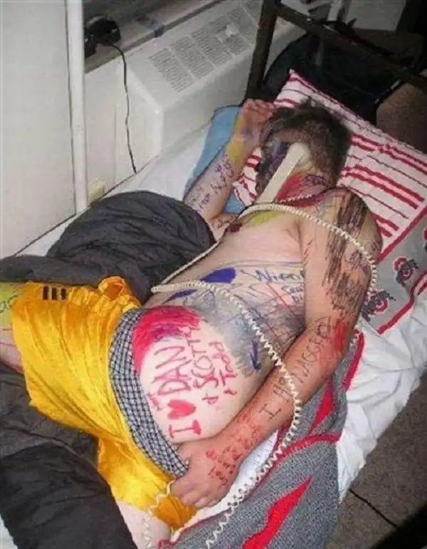 Говорят: «Алкоголь - враг мой». Но главное в этом деле, как и во всём остальном, знать меру. Однако эти весельчаки и вовсе слетели с катушек. Они сами не поняли, как оказались пьяными в стельку. Друзья, конечно же, решили поглумиться с негодников и запечатлеть всё это на камеру. Эти жуткие фотографии, сделанные после зажигательной вечеринки - веская причина, почему не стоит напиваться до чертиков. Слова, как говорится, здесь лишние...