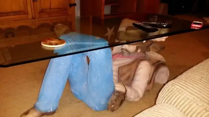 А перед зеркалом баба раком стоит. Эффект кривого зеркала?