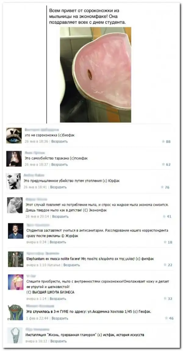 Решим задачу - как насекомое (обозначим за Н) попало в мыльницу (обозначим за М)? Предположим, что М ничем не была накрыта, но в таком случае студенты бы зачерпывали мыло из М, что привело бы к ускоренному расходу мыла. Значит М была закрыта. В таком случае возможны следующие способы попадания Н в М: