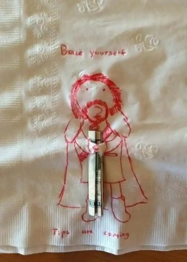 Ни для кого не секрет, что официанты живут в основном не на зарплату, а на чаевые. Так что оставить денежек обслуживающему персоналу в качестве благодарности - правило хорошего тона. Размер может варьироваться в зависимости от того, насколько тебе нахамили.