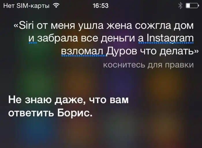 Сегодня вечером Apple выпустил очередное обновление мобильной ОС iOS. Версия 8.3 содержит долгожданный русскоязычный голосовой помощник Siri. Уже спустя несколько часов в сети появились скрины, проливающие свет на то, как происходит общение человека с мобильным телефоном.