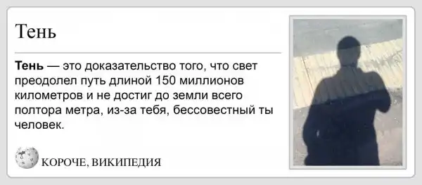 Одни креативные ребята решили создать альтернативную Википедию. Все так же, как и в самой популярной энциклопедии, — только сухие описания с фактами и датами они заменяют на короткие и в то же время емкие ироничные заметки.