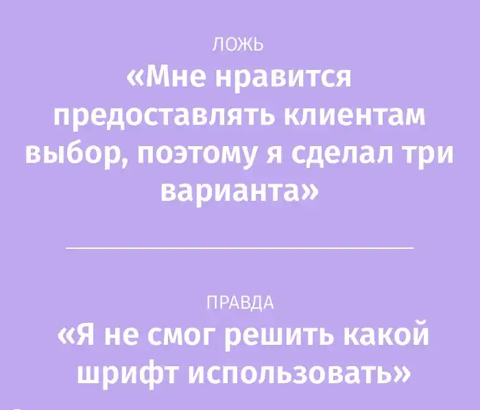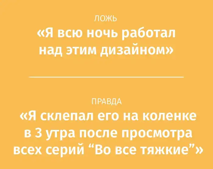 Представляю серию забавных плакатов, в которых показали типичную дизайнерскую ложь и скрывающуюся за ней правду.
