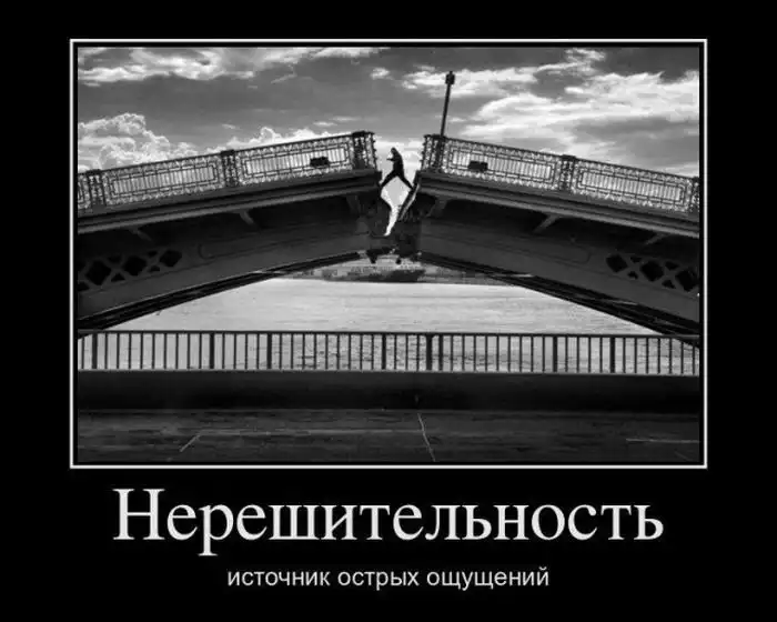Увидел картинку и прифигел. Оказывается у нерешительных куча острых ощущений. Не решился с парашютом прыгнуть, не решился поехать в путешествие, не решился выйти из дома, просто огого сколько острых ощущений получил. )))