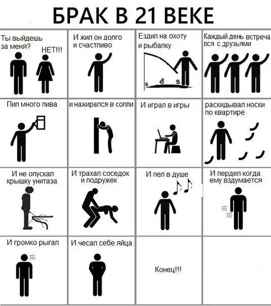 По поводу брака в 21 первом веке...У меня и в браке все как там описано...Ну кроме трахания соседок... И ХЗ почему все говорят что после женитьбы все меняется...Просто нужно жену выбирать нормальную и не быть подкаблучником...