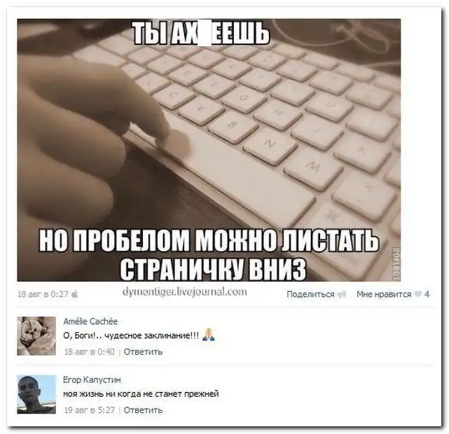 эта большая кнопка называется пробел? и моя жизнь не станет прежней