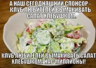 Не салат хлебушком вымакивают, а жижку, оставшуюся после него.я тоже в этой партии))