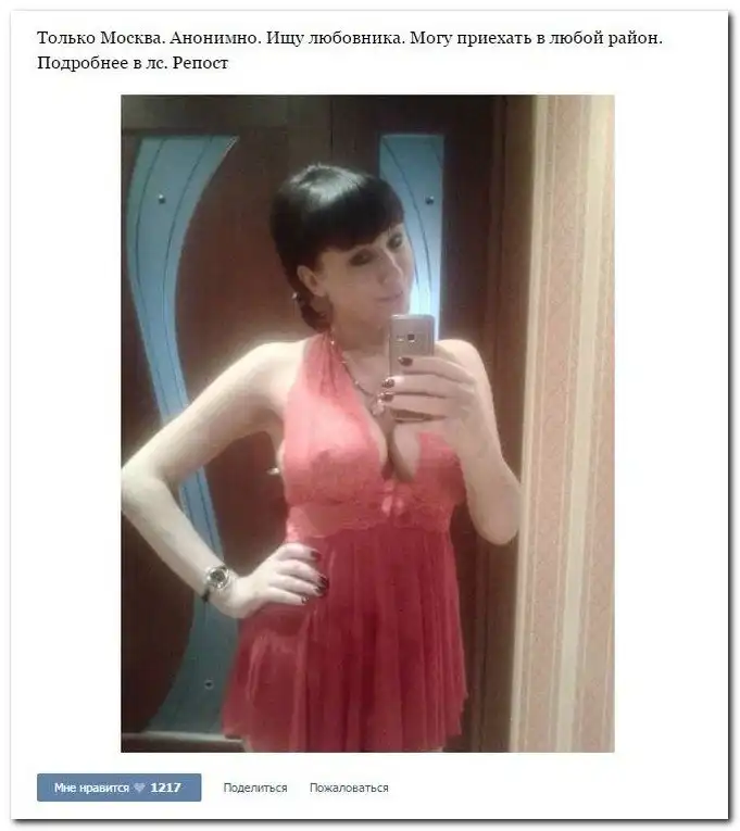 Очередная партия веселых дам из группы "Знакомства со зрелыми", которые ищут в Интернете приключения на свою задницу (и не только). Смотрите на свой страх и риск, только постарайтесь не влюбиться – эти стервы выжмут из вас все соки и найдут себе другого, помоложе и с агрегатом побольше, через тот же паблик...