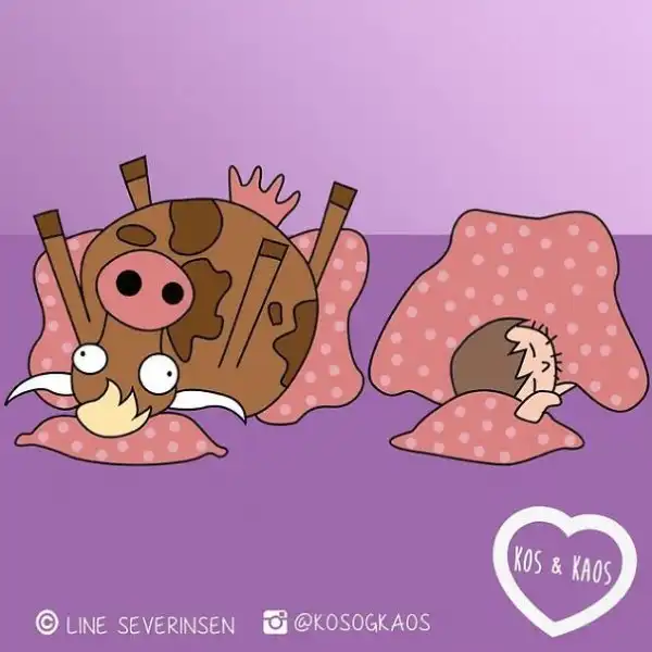 Лайн Северинсен, художник-иллюстратор и мать двоих детей из Бергена, нарисовала забавные комиксы, которые точно передают сложности повседневной жизни любой будущей мамы. Её проект Kos og Kaos («Объятия и хаос») рассказывает об этом в весёлой и непринуждённой форме.