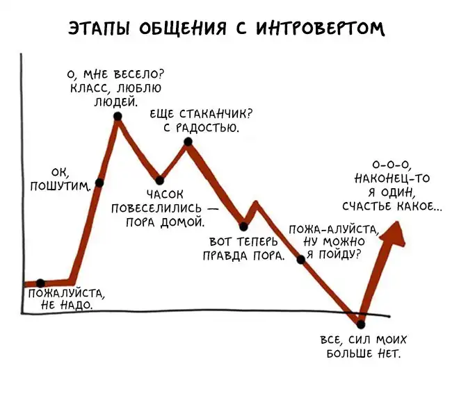 Интроверты — особые люди. По вечерам и в выходные они предпочитают побыть дома в одиночестве, а не сидеть в шумном баре или болеть на стадионе за любимую футбольную команду в толпе фанатов. Из-за этого у многих из них репутация нелюдимых. Но это вовсе не так. Анна Борджес (Anna Borges) нарисовала отличные графики о жизни интровертов, которые помогут вам лучше понять многих своих друзей.
